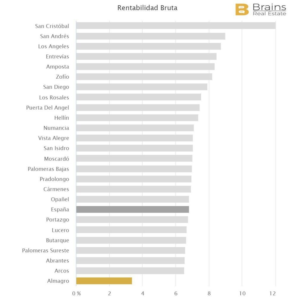 Par quartiers, ceux où les prix des logements sont plus abordables offrent des rendements plus élevés. C’est le cas, par exemple, de San Cristóbal, San Andres, Los Ángeles et Entrevías, dont les rendements à la fin du dernier trimestre étaient respectivement de 12%, 9%, 8,7% et 8,4%.