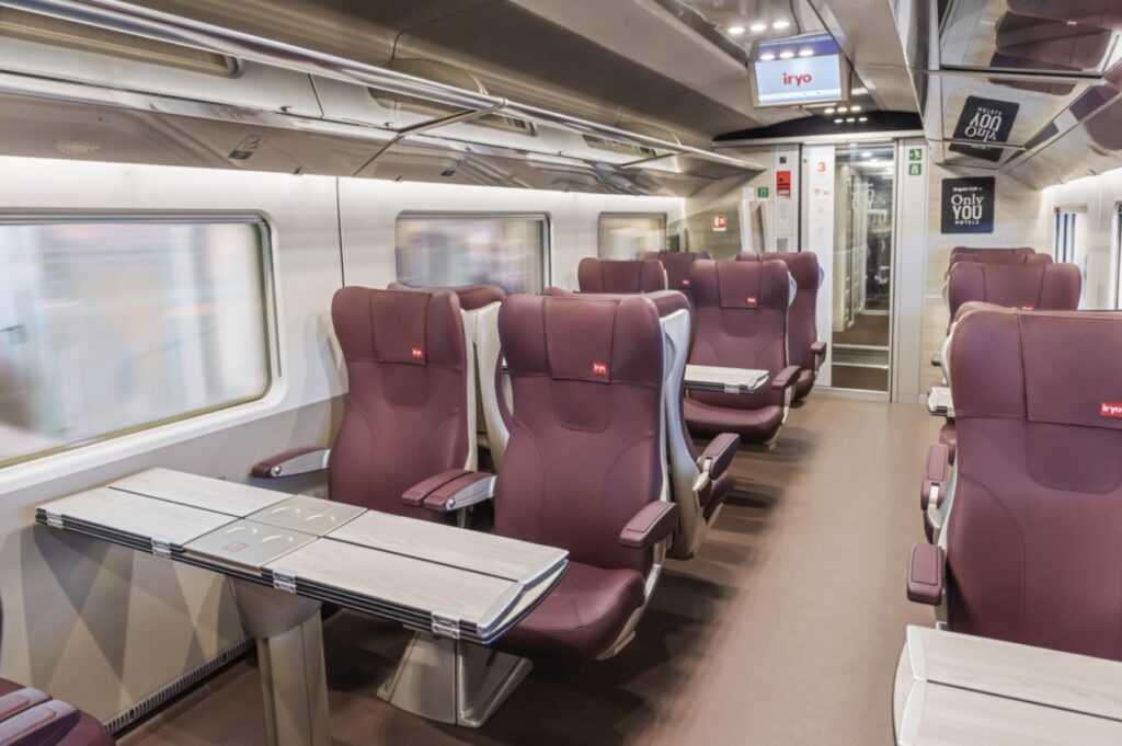 Avec un engagement ferme envers la ponctualité, afin que les voyageurs puissent arriver à destination dès le matin et commencer leur journée de travail, l’offre d’iryo est complétée par la classe « Initial », la moins chère sans renoncer au meilleur confort.