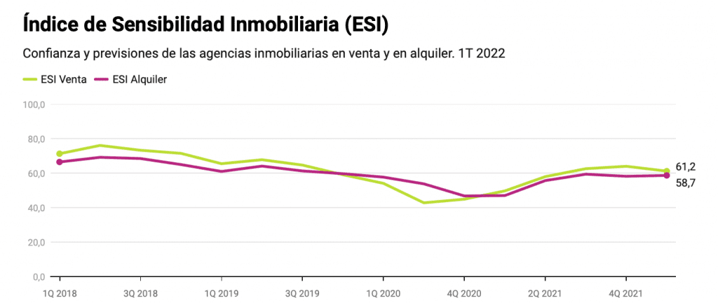 Les agences immobilières estiment pour le début de l’année que les prix des logements continueront d’augmenter à la fois dans les ventes et les locations, tandis que l’activité de ventes et d’acquisitions continuera d’augmenter, bien qu’à un rythme plus lent qu’au cours des trimestres précédents, selon l’enquête de sensibilité à l’immobilier (ESI) préparé par idealista, le principal marché immobilier du sud de l’Europe. Les indices généraux restent supérieurs à la moyenne observée juste avant le déclenchement de la pandémie de coronavirus.