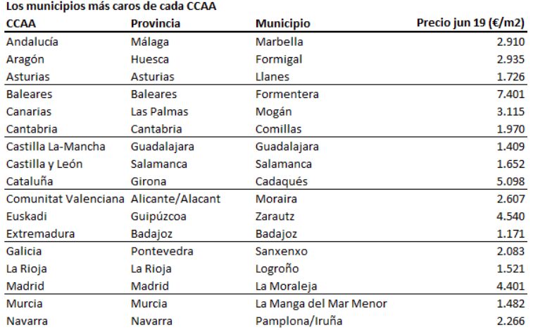 Les municipalités les plus chères dans chaque communauté autonome