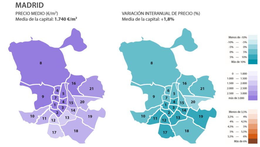 Dans l’ensemble, l’immobilier à Madrid se porte bien, voire très bien, le prix au m2 dans la capitale ayant augmenté de plus de 6% en 2019, tandis que la rentabilité locative se situe entre 4 et 5,5% selon les quartiers.