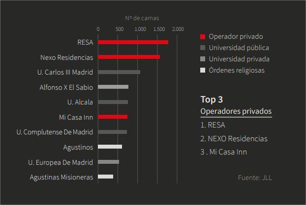 L’étude la plus complète que vous pouvez trouver sur ce sujet, est celle de JLL sur le Marché des Résidences Étudiantes en Espagne.