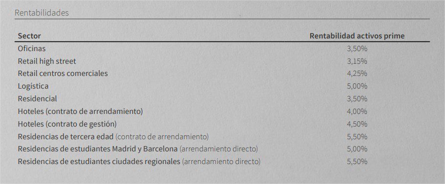 La cabinet JLL a fait une comparaison de la rentabilité des actifs immobilier en Espagne par typologie. Les résidences étudiantes, qui plus-est si elles sont en province, sont les actifs les plus rentables en Espagne avec en moyenne 5,5% de rentabilité, ce qui représente bien plus que le marché des bureaux qui offrent à peine 3,5% ou encore le retail avec seulement 3,15%.