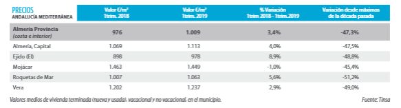 - Logement multifamilial: maisons situées sur la plage de Vera entre 1.800 € / m2 et 2.000 € / m2.