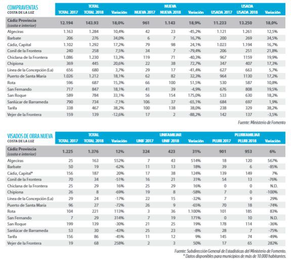 L’augmentation du nombre de transactions est notable dans presque toutes les municipalités de la région. Cependant, à Barbate, il y a eu peu de variation par rapport à l’année dernière.