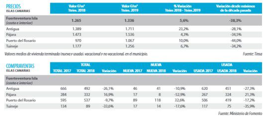 Le stock de constructions neuves hérité de la crise est en diminution, plus important dans les zones touristiques, Tuineje étant moins attractif pour les maisons de vacances. La typologie qui se vend le mieux est celle des logements multifamiliaux à une ou deux chambres à coucher, avec des surfaces moyennes comprises entre 60 et 75 m2 dans un bloc ouvert, avec terrasses et des villas unifamiliales à trois chambres à coucher d’environ 100 à 150 m2.