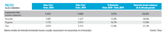 La reprise se poursuit déjà depuis les années précédentes (rebond notable en 2017 et consolidé en 2018). Il existe actuellement un équilibre généralisé entre l’offre et la demande, sauf dans certains cas tels que Puerto del Carmen, où la demande est plus forte.