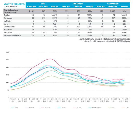 De nouveaux projets ont également été lancés. Il y a des projets à court terme pour les étrangers, au total environ 600 foyers, situés à Lo Pagan (San Pedro del Pinatar) et à Los Alcázares. L’activité est également visible à La Manga del Mar Menor et à Cabo de Palos.
