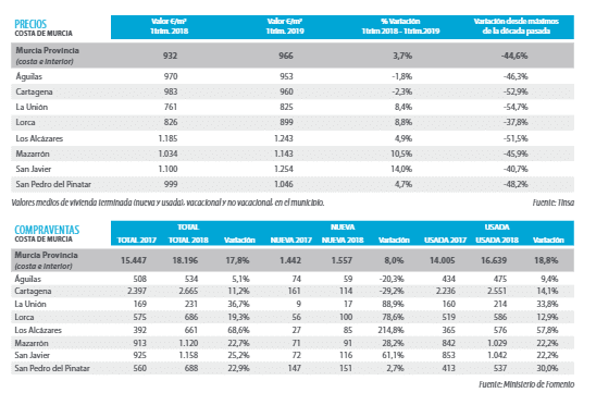 Les prix se sont stabilisés au cours de cette année, détectant certains signes de croissance dans les urbanisations de Mazarrón. À Águilas, il y a aussi une légère augmentation des prix.
