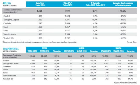 Il y a eu une augmentation des prix sur le marché foncier dans la région, avec une augmentation entre 2% et 3% dans les municipalités de Tarragone, Cambrils et Salou.