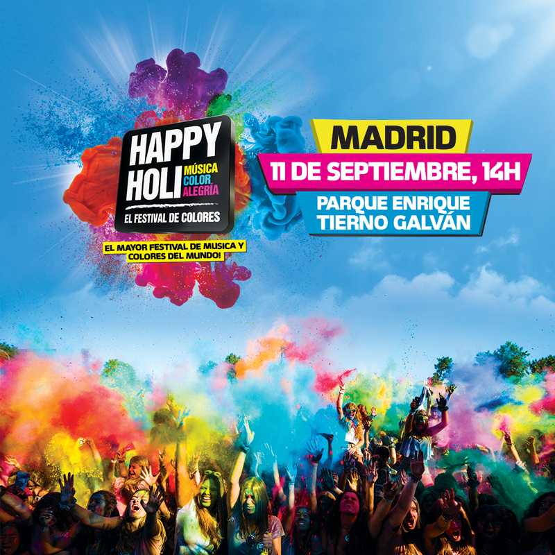 Evénement de la rentrée ! Le festival de couleur arrive pour la première édition en septembre à Madrid ! Avec déjà plus de 870 participants inscrits sur leur événement Facebook, le festival organisé par HappyHoli aura lieu le 11 septembre à 14h au parc Enrique Tierno Galvan. Rejoignez vite l’aventure du festival musical coloré qui réunit des milliers de participants habillés de blanc.