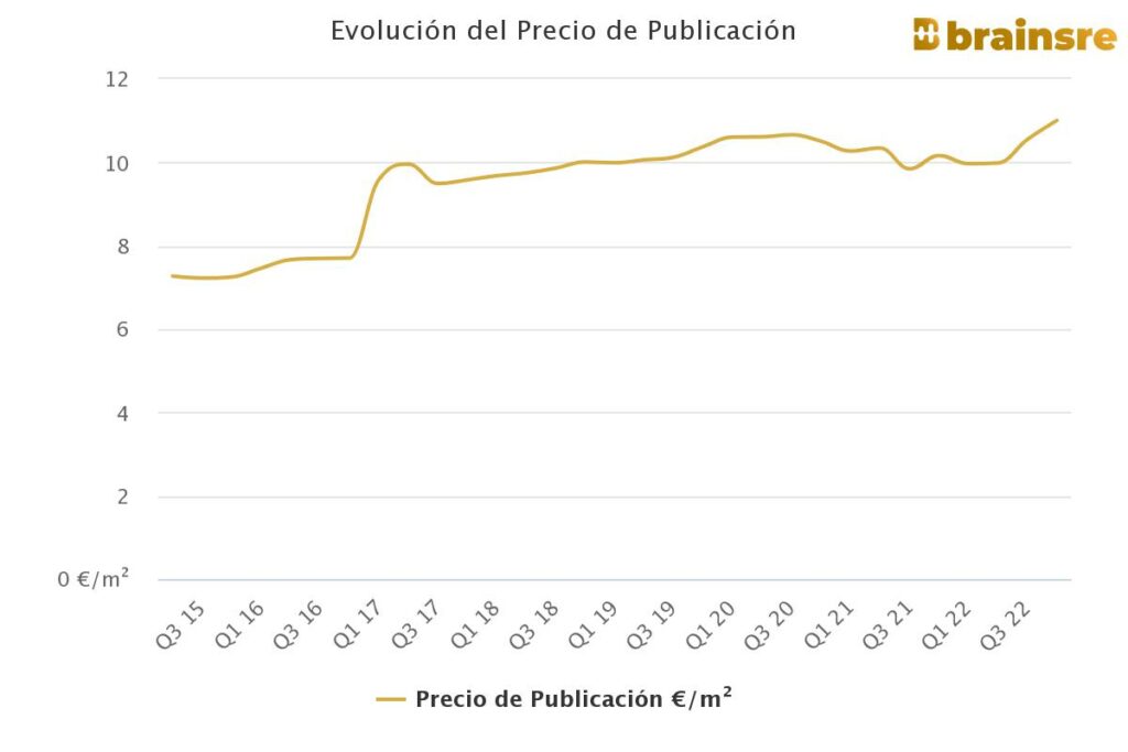 Actuellement, les prix de location des bureaux dans le quartier de Ciutat Vella à Valence n’ont jamais été aussi élevés, atteignant une moyenne de 11 euros par mètre carré et par mois, selon les données de la plateforme de big data immobilière Brainsre.