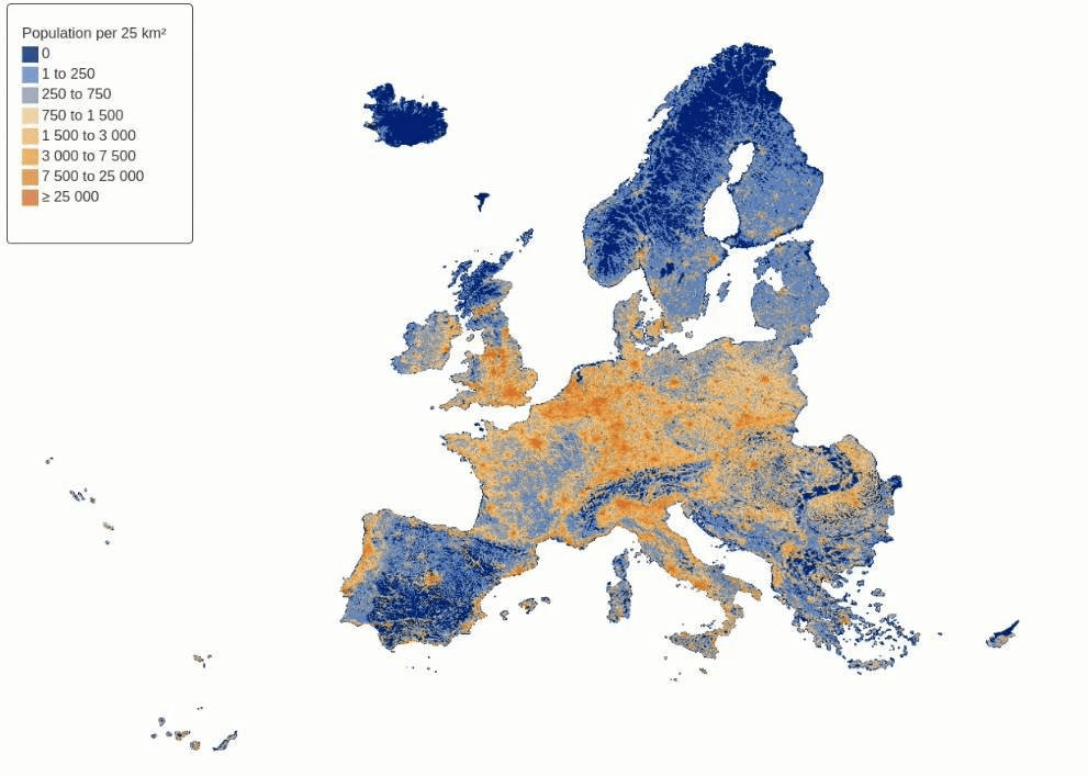 Les données montrent l’existence de douze provinces à l’intérieur de la péninsule ibérique, dont la densité de population est alarmante, inférieure à 25 habitants par km2.