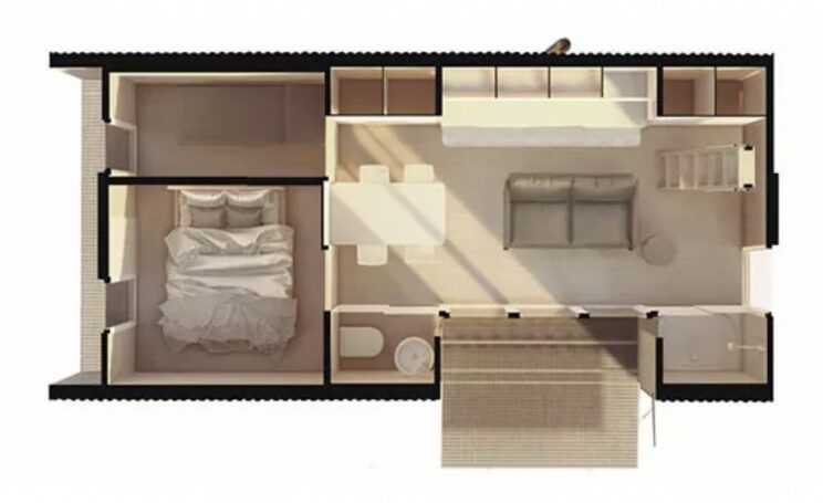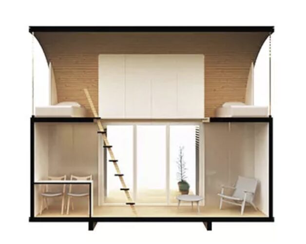 Le modèle intermédiaire, Mohma Standard, débute à 62.000 euros et comporte deux étages répartis sur 32,8 m2. Il se compose d’un salon-salle à manger avec cuisine intégrée, d’une salle de bains et de deux chambres à coucher pouvant accueillir un lit double et deux lits simples.
