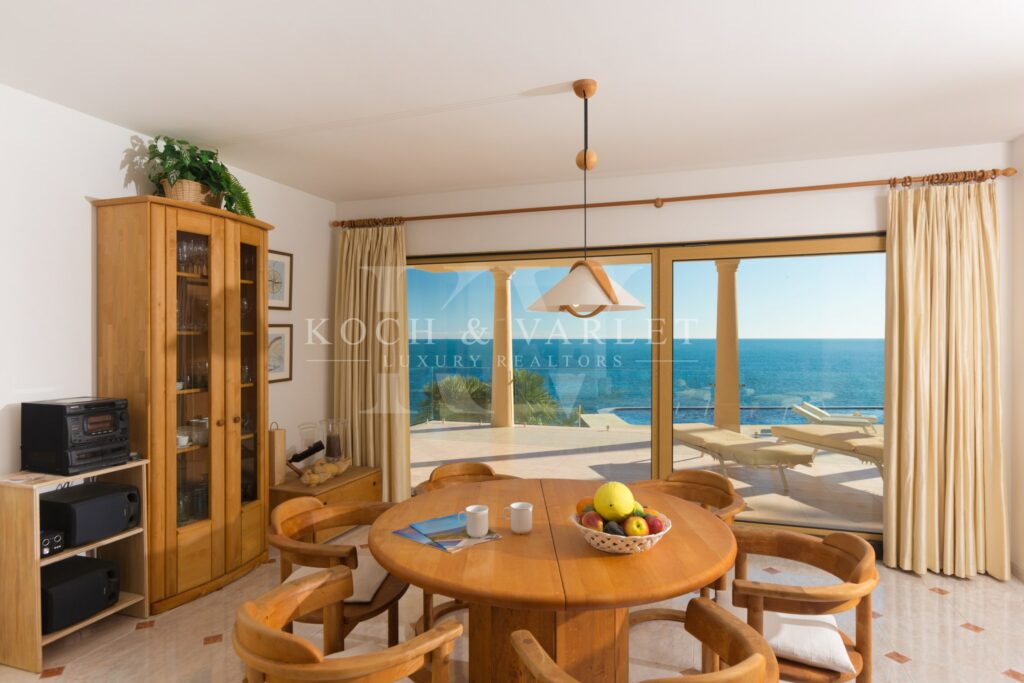 Magnifique Villa en front de mer à Benissa, face au SUD, dans un emplacement unique, à distance de marche du port de plaisance. Ce bijou précieux et exquis est situé sur un terrain plat de 1620 m2, très privé et face à la mer Méditerranée avec des vues privilégiées, dont même les plus exigeants seront ravis.