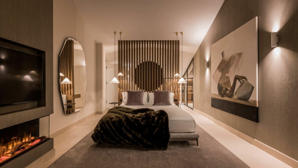 Chambre principale en suite avec dressing, sauna et une chambre d’amis/salle de télévision en suite. Accéder