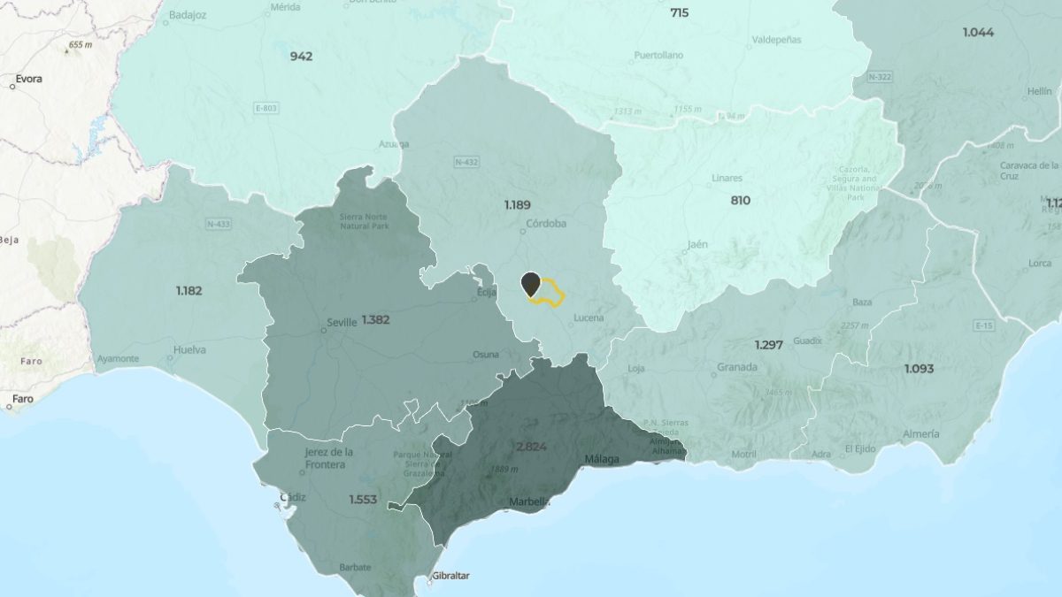 Sur le marché de la location, il existe également de grandes différences en Andalousie. Cependant, le classement des communes les plus et les moins chères change considérablement par rapport à celui de la vente.