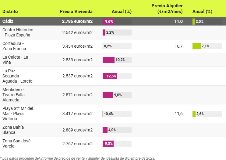 Décembre 2023 – Cádiz | Prix des maisons à vendre et à louer