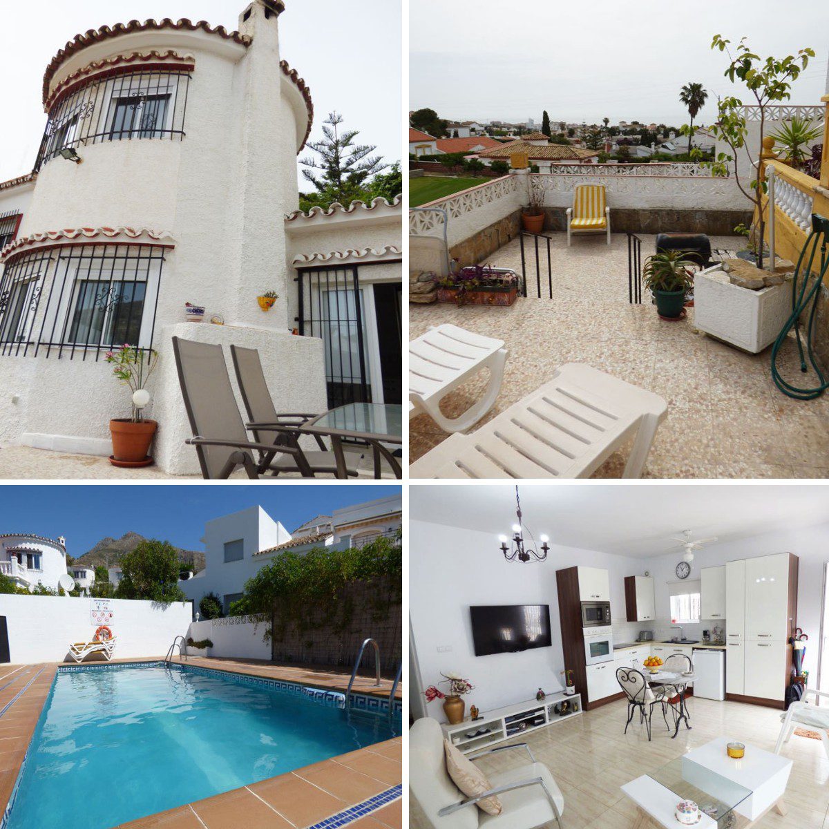 La maison fait partie d’un bel ensemble de maisons avec en son centre une piscine communautaire. La maison est proche de deux grand supermarchés et non loin de plusieurs autres commerces. Le centre ville animé d’Arroyo de La Miel avec ses restaurants, bars, services et sa gare est à seulement 15 minutes à pied. Les plages de Benalmadena Costa sont à 5 minutes en voiture et l’aéroport de Malaga à seulement 20 minutes.