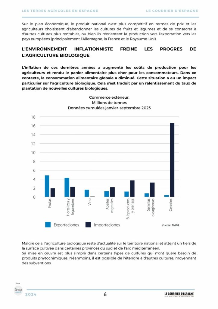Pour lancer cette rubrique, LCE présente une monographie de 40 pages unique en langue française sur la situation des terres agricoles en Espagne, fruits et légumes, jachères etc qui sera disponible aux inscrits de la newsletter