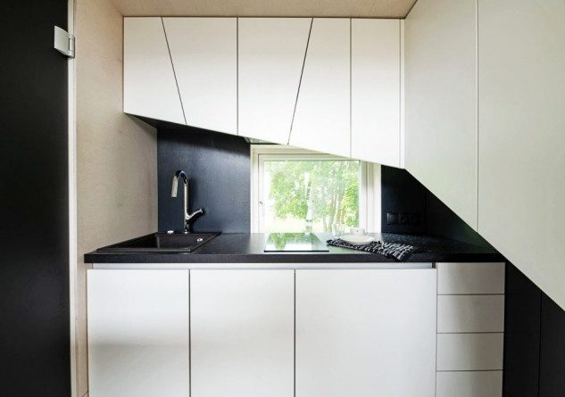 Il s’agit d’un prototype conçu par l’entreprise Kodasema, en Estonie, qui voulait donner une nouvelle dimension au boom des maisons préfabriquées. Leur pari a été de créer une mini-maison design, économe en énergie, construite en 24 heures et installée dans les 24 suivantes. Autrement dit, elle est prête en deux jours.