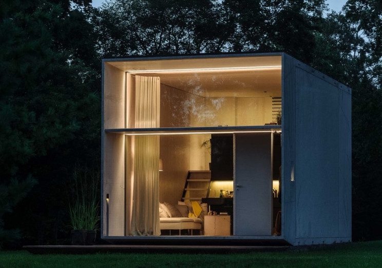 Il s’agit d’un prototype conçu par l’entreprise Kodasema, en Estonie, qui voulait donner une nouvelle dimension au boom des maisons préfabriquées. Leur pari a été de créer une mini-maison design, économe en énergie, construite en 24 heures et installée dans les 24 suivantes. Autrement dit, elle est prête en deux jours.