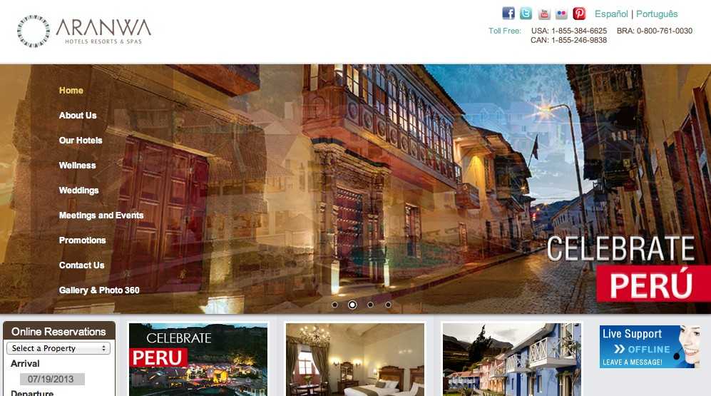Capture d’écran du site Aranwa Stimulé par une bonne gestion de ces cinq hôtels situés aux quatre coins du Pérou, Gabriel Alvarez, directeur général des complexes hôteliers Arwan, a annoncé qu’il investira 25 millions de dollars entre cette année et 2015 dans trois nouveaux hôtels. L’entreprise affiche une croissance de 10% par rapport à la même période en 2012. Elle pourrait même se maintenir sur le reste des semestres de 2013.