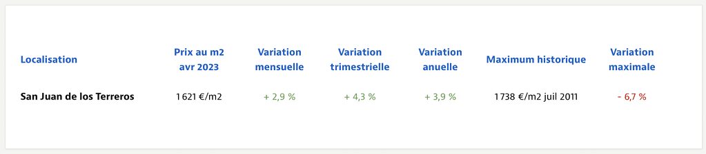 L’évolution des prix de l’immobilier à San Juan de los Terreros ces 5 dernières années