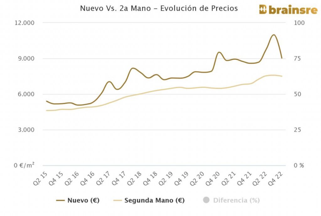 Il convient de souligner la baisse du prix des logements neufs, qui a chuté de 17,8% au cours des trois derniers mois, pour s’établir à 9.030 euros le mètre carré. Les biens d’occasion, quant à eux, ont baissé de 1,1%, à 7.499 euros.