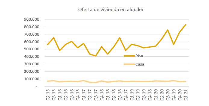 Si la demande semble rétractée, il n’en va pas de même avec l’offre. « L’offre d’appartements a augmenté de 53 %. En revanche, celui des maisons a été réduit de 12%. Cela est dû au fait que, d’une part, il y a eu plus d’appartements d’Airbnb et de propriétaires qui, comme il y a moins de demande, ont mis les propriétés en location ; alors que l’offre de logements a été réduite, en raison de la recherche plus importante de ce type de logement après le confinement et les vagues successives de Covid », expliquent les auteurs du rapport Aura REE.
