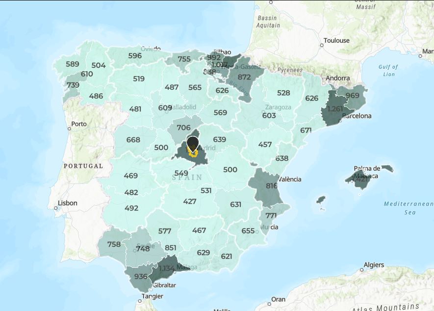 Cependant, la répartition du logement locatif en Espagne est très inégale et les données révèlent qu’il est fortement concentré dans quelques régions seulement. Selon les données de Brainsre, 45% du marché locatif en Espagne est concentré en Catalogne et à Madrid. Si l’on inclut l’Andalousie et la Communauté valencienne, la concentration atteint 75 % de l’offre totale existante en Espagne.