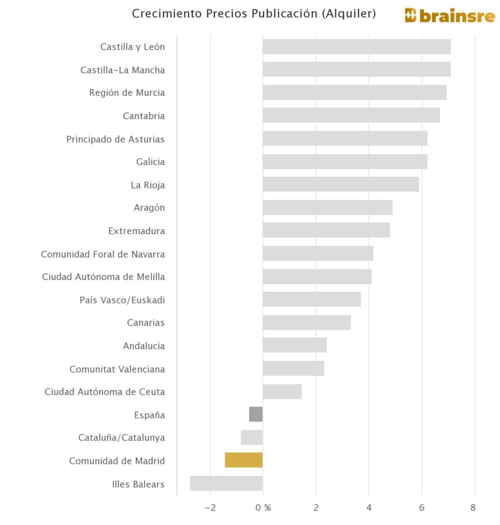 Le marché de la location en Espagne a enregistré quatre années de croissance continue des prix jusqu’à Covid. Cependant, les données révèlent que le comportement est totalement différent selon les zones. (Brainsre.news)