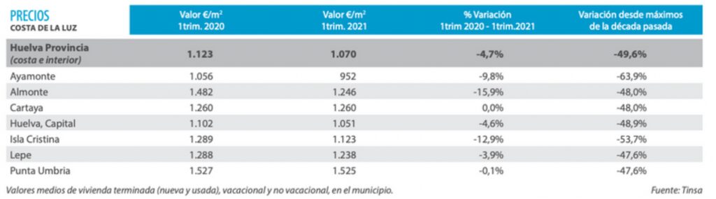 Les prix se sont stabilisés à des chiffres inférieurs à ceux d’il y a 12 mois pour les maisons neuves et d’occasion. Les marchés de la première et de la deuxième résidence maintiennent des dynamiques différentes, notamment ceux de Punta Umbría, dont l’activité de résidence principale se concentre sur des typologies protégées. Loyers stables au cours des 12 derniers mois, traditionnellement demandés par les étrangers.