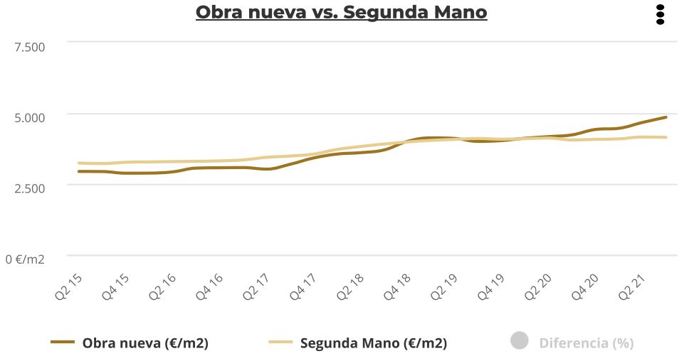 « Les prix des nouvelles constructions ont atteint des sommets historiques à Madrid ce trimestre et ont maintenu une escalade continue depuis 2017 qui, du moins pour le moment, ne semble pas avoir de fin. Pendant ce temps, les prix de l’occasion stagnent depuis mi-2019, affichant une tendance latérale autour de 4.100 euros le m2, précise Ramudo.