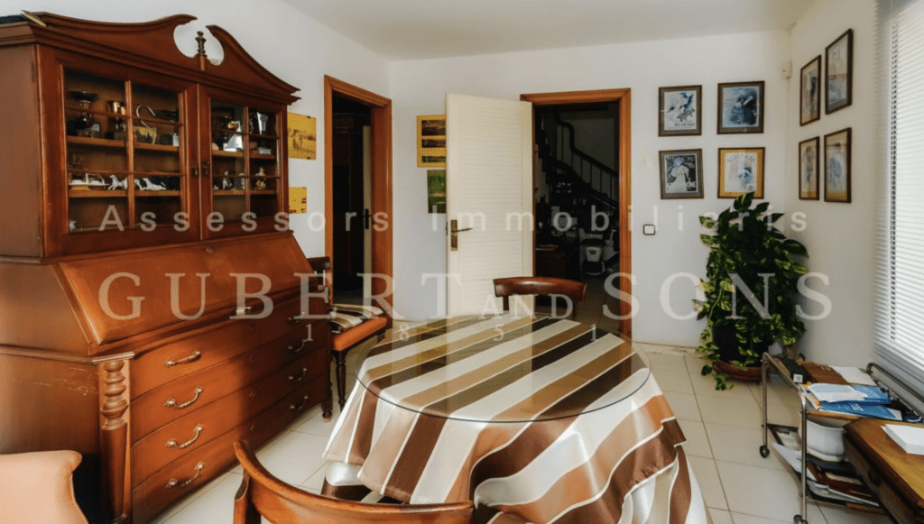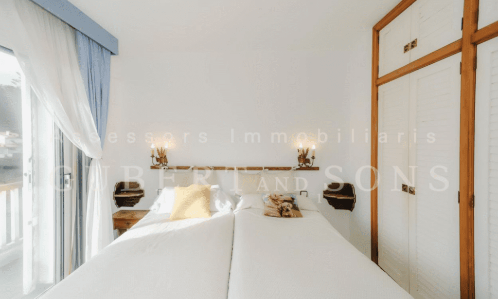 Cette villa à Sant Antoni dispose de 6 pièces comprenant 3 chambres doubles avec armoires et 3 pièces polyvalentes, un salon principal avec cheminée et vue sur la mer, une salle à manger, une cuisine équipée avec buanderie et salle de bains invités, un sous-sol avec parking et à l’étage, 3 chambres avec salles de bains privatives et une terrasse couverte.