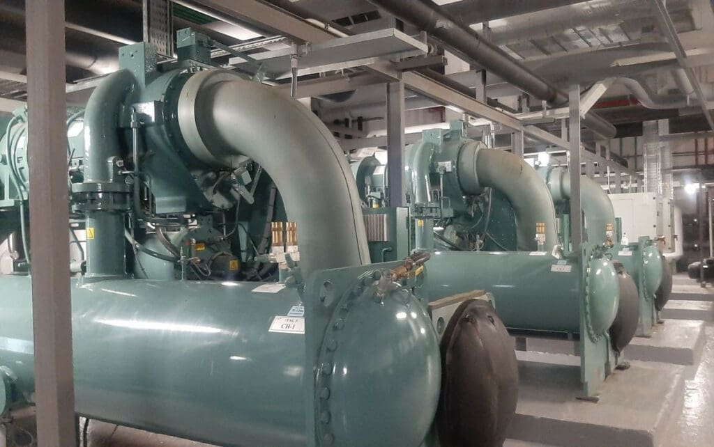 Le complexe dispose également d’un système de traitement de l’air primaire avec récupération d’énergie, qui récupère l’énergie de l’air conditionné extrait de l’intérieur de la pièce et la transfère à l’air extérieur, qui est introduit dans la pièce pour la ventiler. Ce système comprend également des batteries de refroidissement et de chauffage qui permettent de traiter l’air extérieur et de l’introduire dans la pièce à la température et à l’humidité choisies, ce qui permet d’obtenir un air de haute qualité et de réduire les coûts de climatisation.