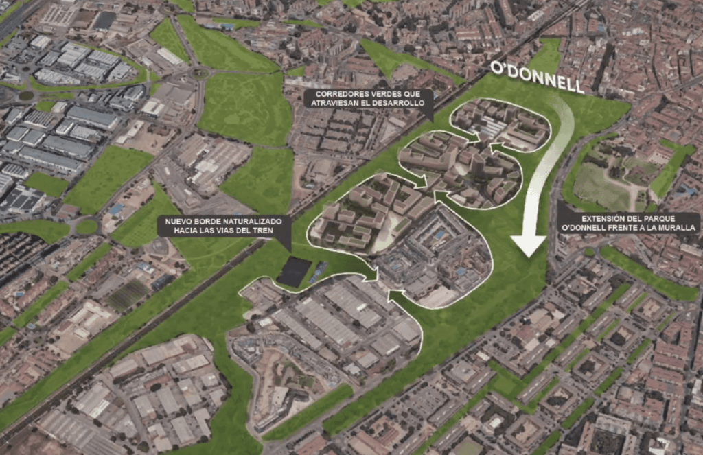 Selon la maire d’Alcalá de Henares, Judith Piquet, le projet initial prévoit la construction d’au moins 2 500 logements, en copropriété et en HLM, des espaces verts, une zone commerciale, un parking, des espaces publics et un bâtiment pour l’événementiel d’entreprises.