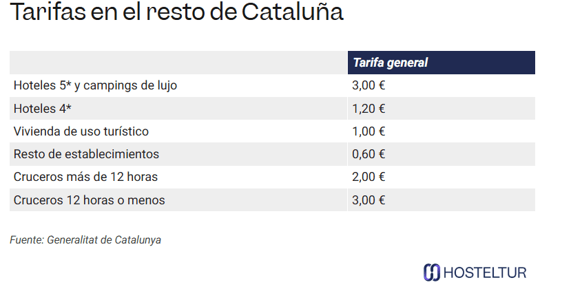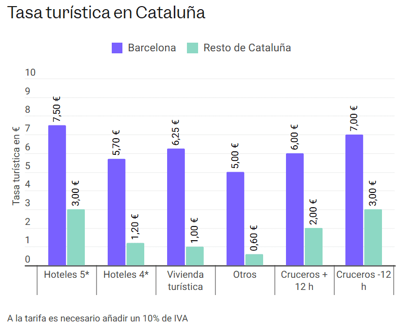 La taxe de séjour dans les établissements touristiques est appliquée en Catalogne depuis novembre 2012. Depuis lors, elle a été progressivement augmentée. Les taux varient en fonction du type d’hébergement et de la zone (Barcelone et le reste de la Catalogne).
