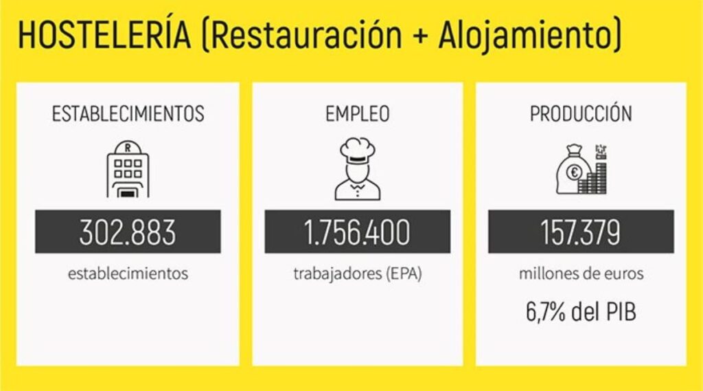 L’annuaire 2024 reprend également les principales données sur l’évolution du secteur en 2023. Une année au cours de laquelle l’hôtellerie-restauration a maintenu plus de 300.000 établissements, avec 1,7 million de travailleurs et généré un chiffre d’affaires de 157.379 millions d’euros, ce qui représente 6,7% du PIB national.