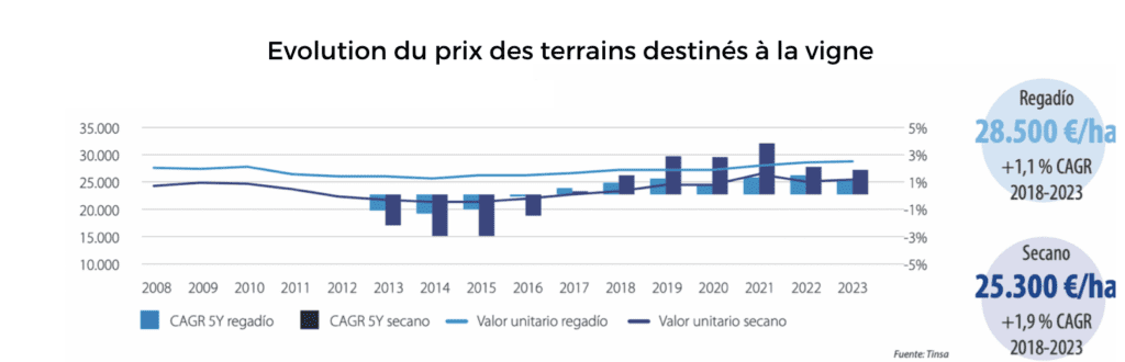 – La consommation de vin en Espagne a diminué depuis la pandémie, ce qui a eu un impact sur la valeur des terres utilisées pour cette culture dans certaines zones, bien qu’en général elle reste stable.