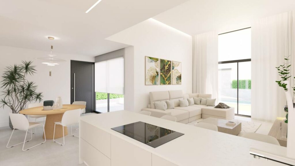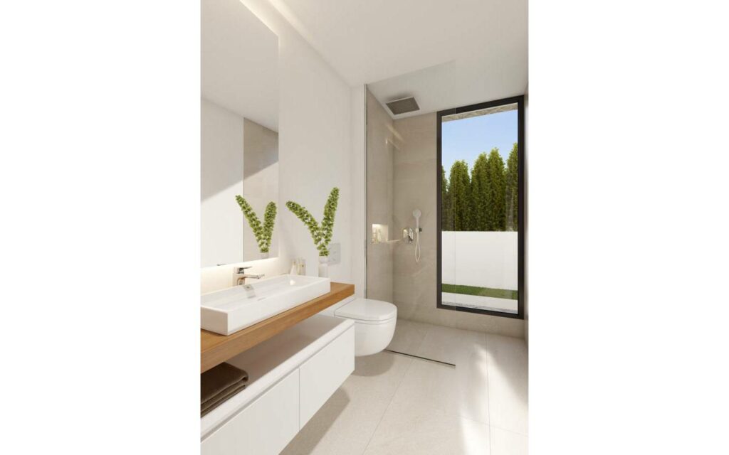 Chaque villa dispose de 3 chambres et 3 salles de bains, piscine privée, solarium, située à quelques minutes à pied de l’exclusif Puig Campana Golf Club House. Il existe la possibilité d’avoir une vue sur la montagne ou sur la mer.