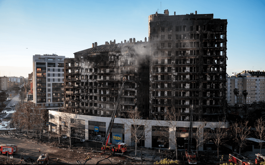 La partie extérieure de cet immeuble, faite de plusieurs couches de matériaux isolant, certains à base de polyuréthane, de fibre de roche ou de résine a eu un « effet de cheminée et a favorisé la propagation du feu” selon le président de l’Ordre officiel des architectes de Valencia, Luis Sendra. Cet immeuble a été construit entre 2005 et 2008 par le promoteur Fbex (qui a fait faillite en 2022), en pleine période de bulle et folie immobilière : à cette époque, il n’y avait pas autant de restrictions sur les matériaux pour les façades et le mobilier de terrasse ; les réglementations anti-incendie actuellement en vigueur ont été consolidées plus tard, en 2011. Ce drame rappelle celui de juin 2017, à Londres, lorsque la tour Grenfell s’était enflammé comme une torche, les flammes se propageant à grande vitesse à cause du revêtement posé sur la façade.