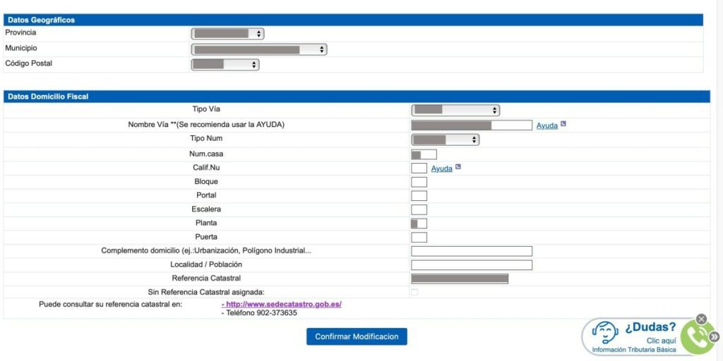 La procédure de modification des données du bureau des impôts est simple et il est possible de changer d’adresse fiscale en ligne, à condition que nous ayons l’accréditation nécessaire. Il est également possible de demander au bureau des impôts s’il correspond à la réalité.