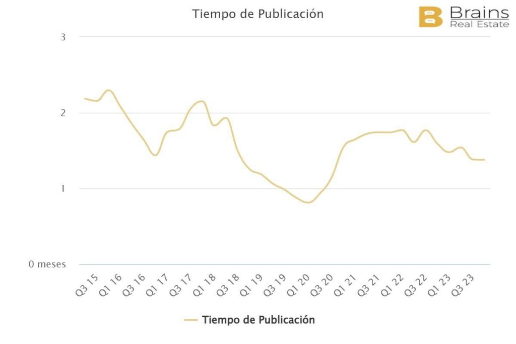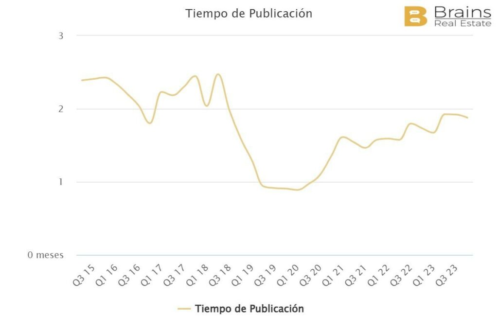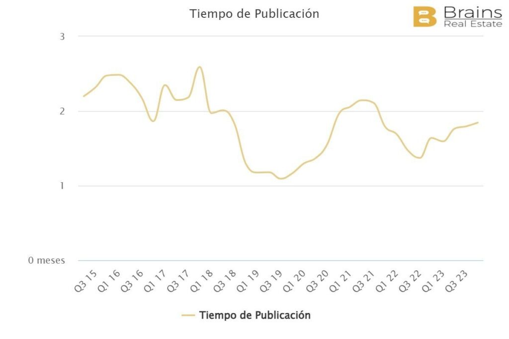 Le délai moyen de publication dans Entrevías est également de 1,8 mois. Comme dans le cas des quartiers précédents, les valeurs n’ont pas retrouvé les chiffres d’avant la crise, lorsqu’elles étaient inférieures à un mois.