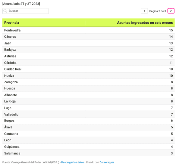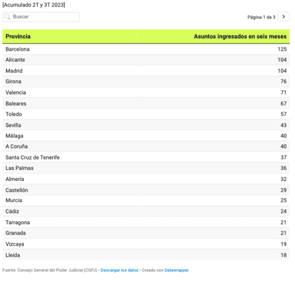 Les îles Canaries, les îles Baléares, Murcie et la Galice sont à l’écart, avec toujours plus d’un demi-millier de procédures, tandis que les autres régions autonomes ont déjà enregistré moins de 500 plaintes au cours des cinq dernières années. Les autres régions autonomes ont déjà enregistré moins de 500 demandes au cours des cinq dernières années. En bas du classement, on trouve la Navarre et La Rioja, avec moins de 100 unités.
