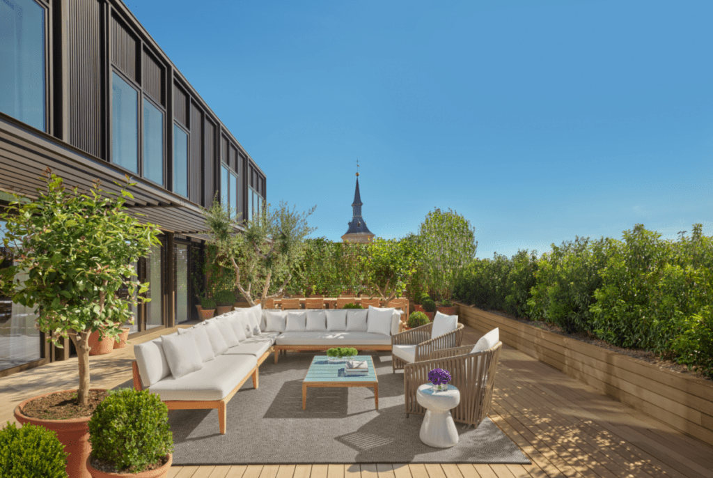 Le tout dans un bâtiment unique datant de 1953, lorsque l’architecte Julián Otamendi a conçu ce gratte-ciel qui est immédiatement devenu une icône traditionnelle. Un statut retrouvé en 2019, suite à l’engagement du groupe majorquin de mettre en valeur un rooftop unique avec vue sur le centre de Madrid, le Palais Royal et le Temple de Debod.
