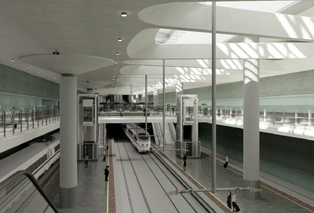 La nouvelle gare, qui fait partie de la phase 2 du nouveau complexe ferroviaire d’Atocha, sera intégrée au reste des installations à grande vitesse (en utilisant les mêmes halls, filtres de contrôle, etc.) pour une utilisation maximale, en évitant la duplication des espaces et des équipements.