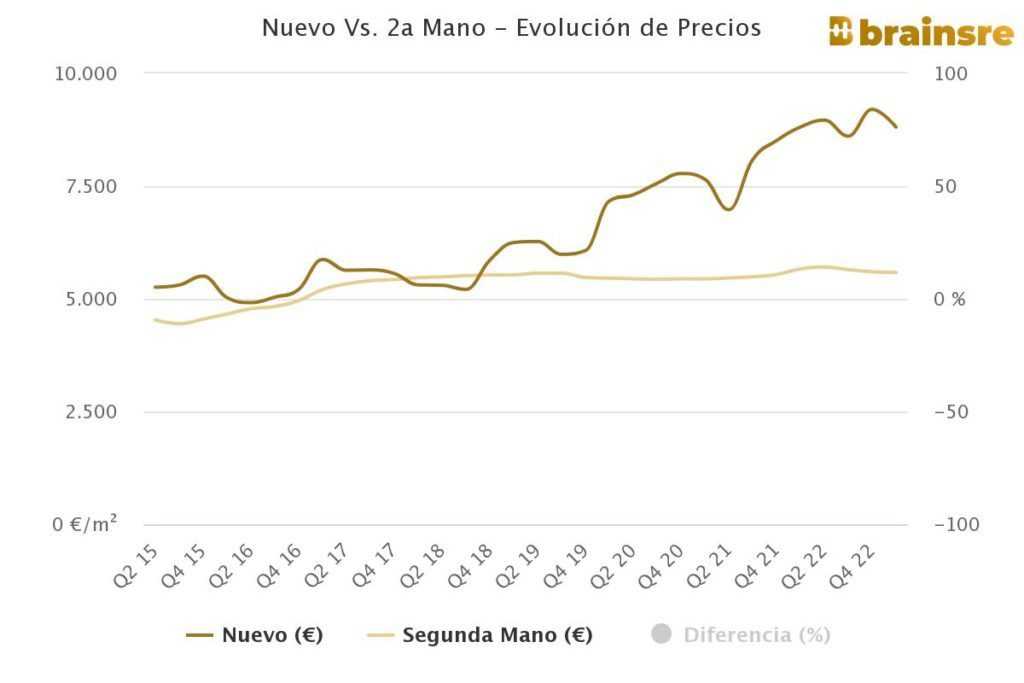 Le prix des logements dans la municipalité de Barcelone, qui compte plus de 1,6 million d’habitants, la deuxième ville la plus peuplée de tout le pays, s’élève actuellement à 4.643 euros par m2, ce qui représente une hausse de 2,2% en glissement annuel et une légère augmentation de 0,1% en comparaison trimestrielle.