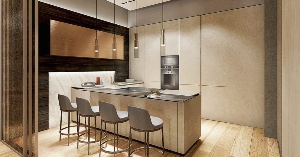 Au total, le bâtiment est divisé en 12 luxueux étages avec des vues et un design intérieur exceptionnel. Un grand hall d’entrée accueille les propriétaires et leurs invités et un magnifique double escalier donne accès aux 6 étages, au penthouse et à la terrasse sur le toit. De plus, des ascenseurs mènent directement du hall d’entrée à chacun des appartements, assurant ainsi sécurité et intimité.