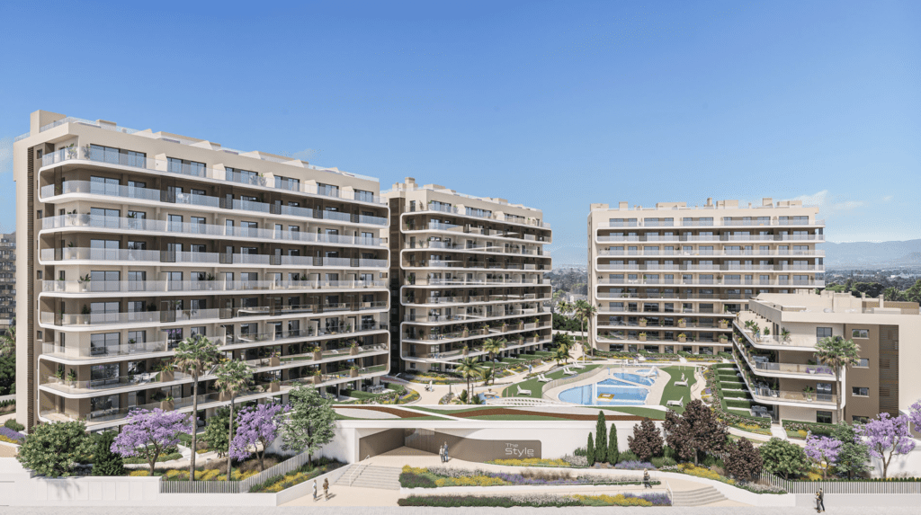 The Style by TM représente le style de vie que vous recherchez; un style de vie moderne pour profiter de votre temps libre au bord de la mer, dans un environnement où vous pourrez vous détendre, à deux pas d’un large éventail de loisirs et de services. Un projet résidentiel situé dans le quartier Pau 5 à Playa de San Juan (Alicante), à seulement 300 mètres de la promenade de la plage. The Style by TM compte un total de 190 maisons de 2 et 3 chambres avec 2 salles, 4 chambres avec 3 salles de bain et des combles avec solarium. L’urbanisation offre d’excellents espaces communs avec un jardin intérieur avec gazon artificiel et parterres de fleurs, des piscines communautaires pour adultes et enfants, une piscine de jeux, deux jacuzzis, une salle de sport équipée, un court de paddle-tennis, une aire de jeux pour enfants, une salle polyvalente pour la communauté et une mini-piste de sport. De plus, pour garantir une tranquillité d’esprit maximale, The Style by TM est entièrement clôturé, il dispose d’un portail de conciergerie et d’un accès par un interphone vidéo. Installez-vous dans l’un des meilleurs quartiers de Playa de San Juan !